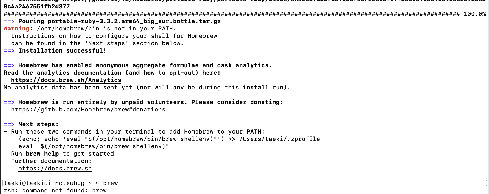 설치 후에 brew 명령어를 사용하면 없는 명령어라고 나옵니다