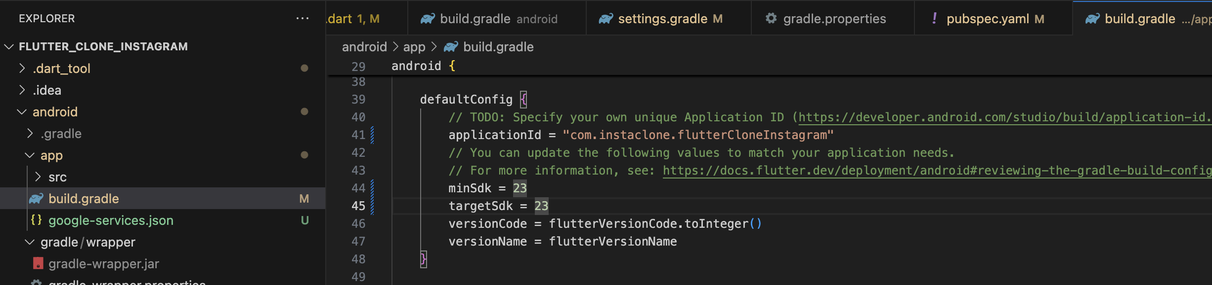 │ /Users/taeki/Develop/vsc_workspace/flutter_clone_instagram/android/app/build.gradle: │