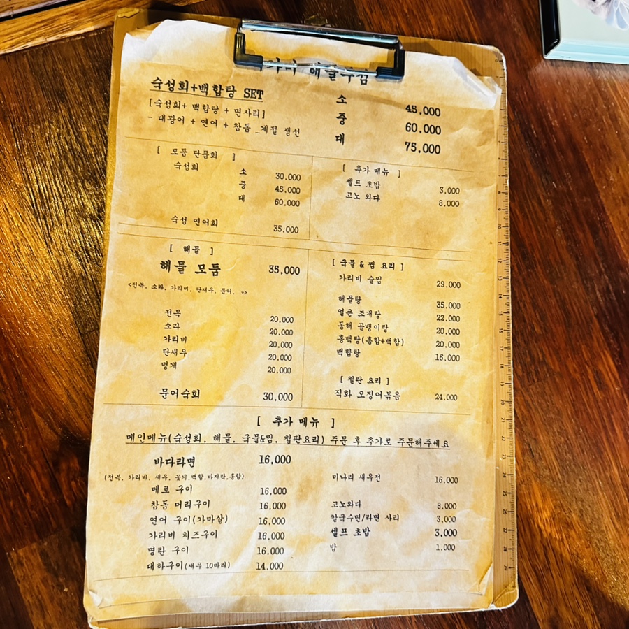 숙성회 + 백합탕 세트바리 소짜 싸이즈~