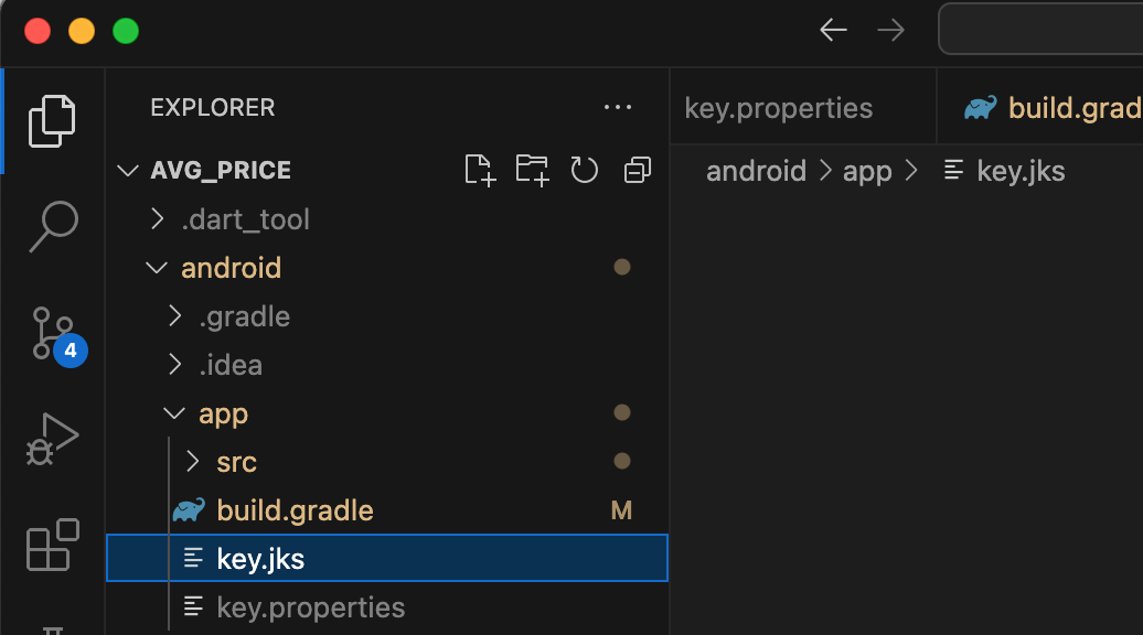 생성된 key.jks 파일을 프로젝트폴더 내에 [android > app] 에 복사해 줍니다.